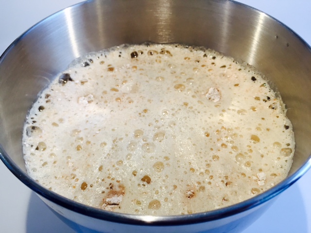 Die Zutaten für den Vorteig in einer Schüssel mischen, mit einem Tuch abdecken und 18-20 Stunden bei Zimmertemperatur gehen lassen.