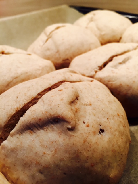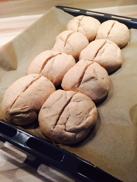 Die Teiglinge längs einritzen und für weitere 45 Minuten bei Zimmertemperatur gehen lassen.