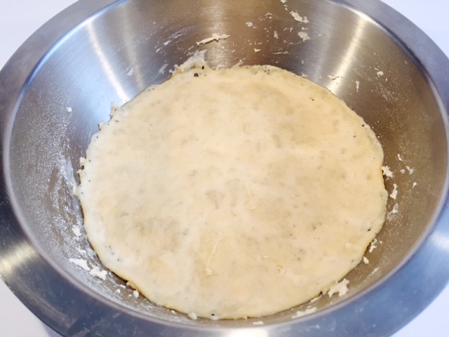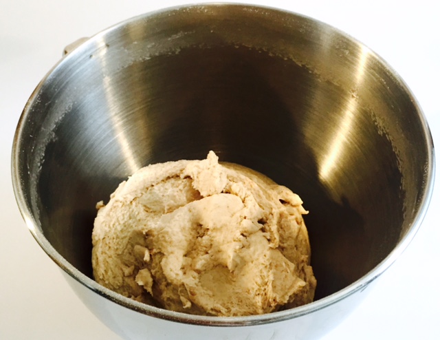 Diesen Teig bei Zimmertemperatur 2 Stunden gehen lassen. Nach einer Stunde den Teig aus der Schüssel nehmen und noch einmal durchkneten.