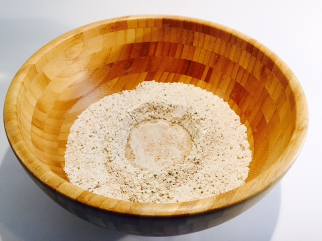 Zucker und Hefe in 100 ml lauwarmes Wasser auflösen. 350 g Mehl, 150 g Schrot und Salz in einer Schüssel vermengen. Nun mit einem Kochlöffel eine Mulde drücken und die aufgelöste Zucker-Hefe Mischung in die Mulde geben. Mit etwas Mehl drumherum vermischen, sodass ein kleiner Vorteig entsteht. (Nicht mit dem kompletten Mehl in der Schüssel verrühren.) Diesen dann mit etwas Mehl vom Rand bedecken und 15 Minuten gehen lassen.