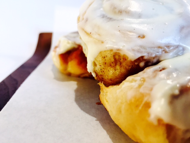 In der Zeit wo die Zimtschnecken gehen, kann das Cream Cheese Frosting zubereitet werden. Hierfür 100 g Frischkäse, 30 g weiche Butter, 100 g gesiebten Puderzucker und ein paar Tropfen Vanillearoma mit dem Mixer mischen. Falls das Frosting zu dickflüssig sein sollte, dann ein bisschen Milch hinzufügen. Sollte aber nicht zu flüssig sein.